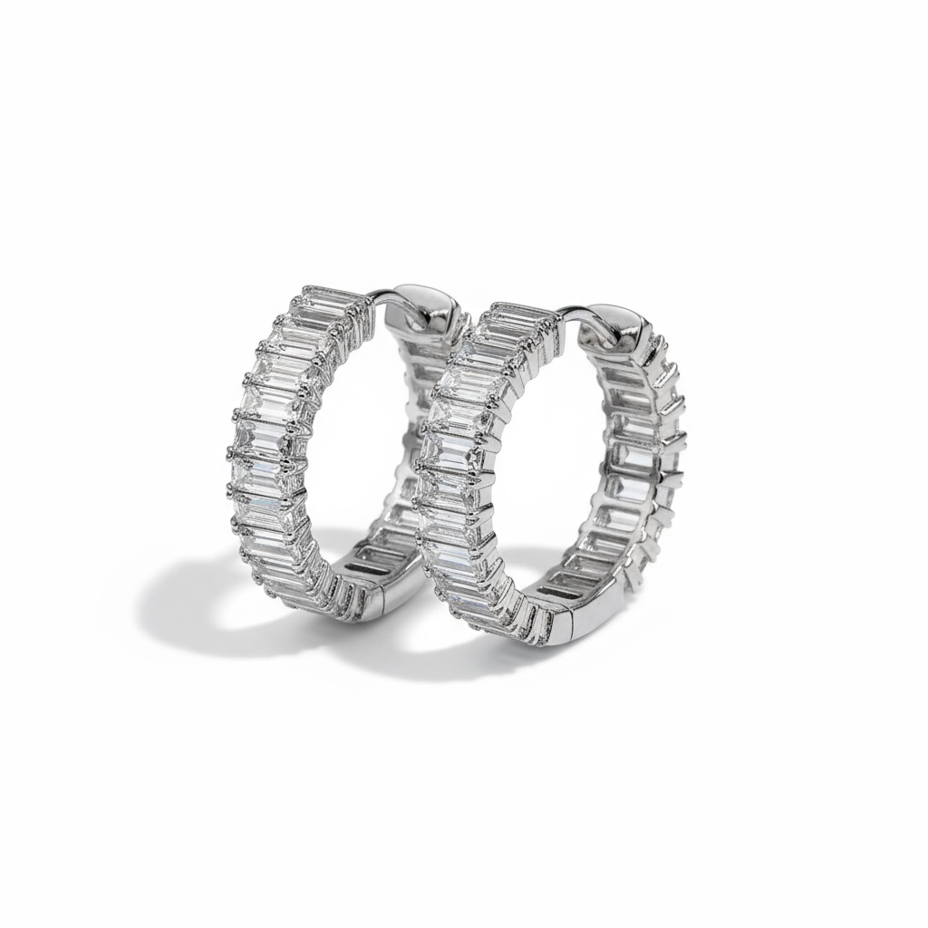 CZ Diamond emerald hoops