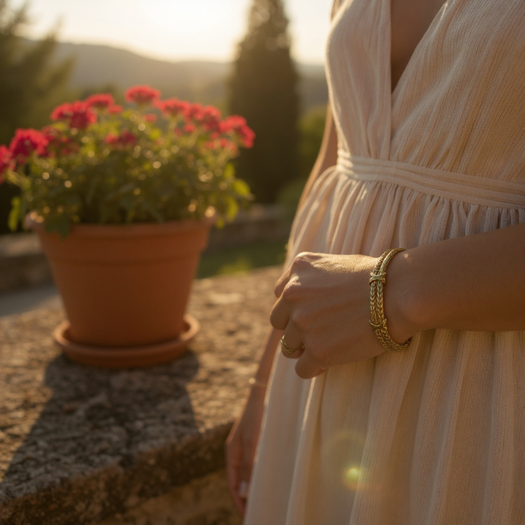 Crafted with gold over silver, this double link bracelet features an elegant X detail that adds a touch of sophistication. The double bracelet design is both stylish and functional, secured with a staple for a stunning and timeless accessory.