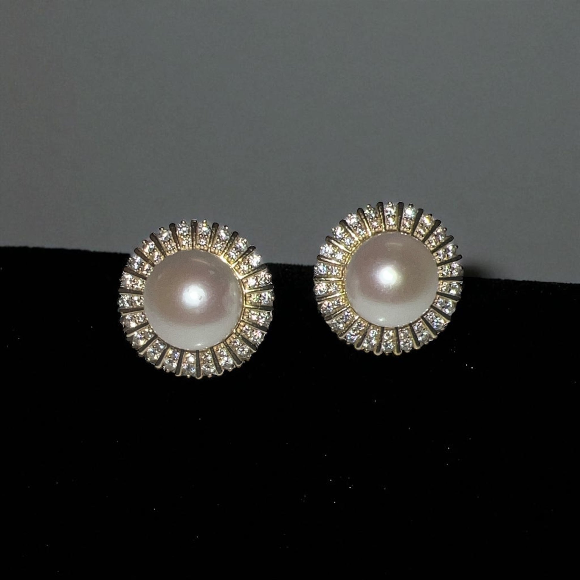 These Pearl Statement Earrings are the perfect blend of elegance and versatility. Crafted with high-quality 14k gold over sterling silver, they feature stunning pearls and sparkling CZ stones. Whether for a wedding or a special occasion, these earrings will add a touch of sophistication and grace to any outfit.